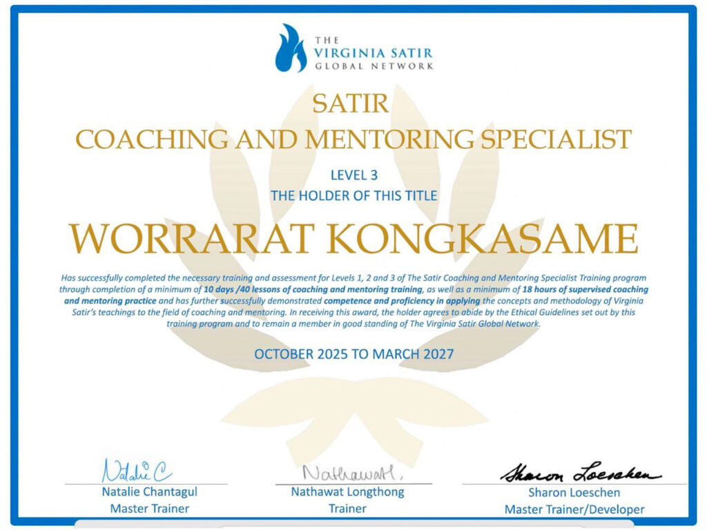 ใบรับรอง Satir Coaching & Mentoring Specialist level 3